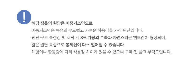 전체적으로 넉넉한 사이즈로 체구가 작거나 왜소하신 분들은 반드시 상세 사이즈를 확인 후 구매해 주세요.