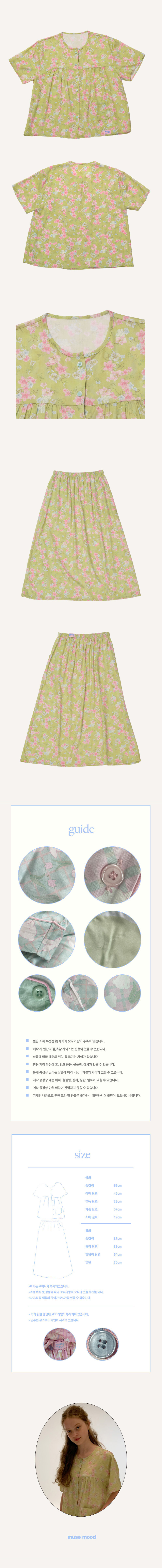 [60수면모달] Olive flower skirt pajama 치마잠옷