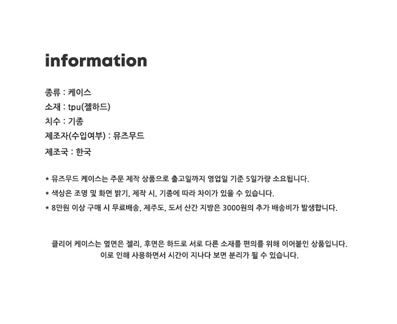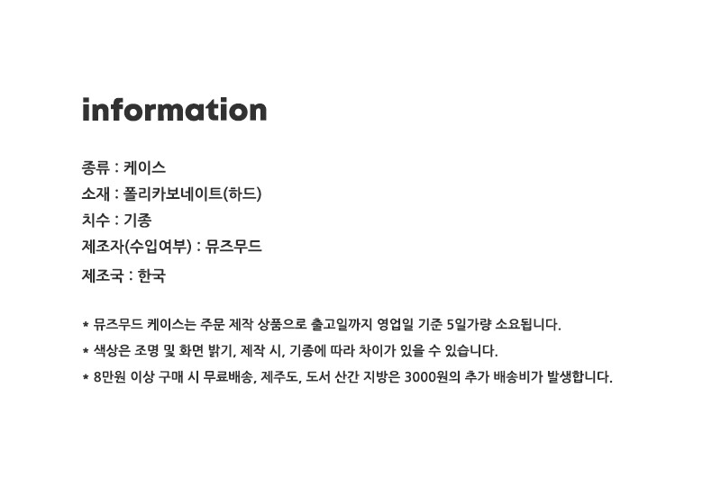 * 제품의 정보 및 디자인 이미지는 case 카데고리를 참고 부탁드립니다.